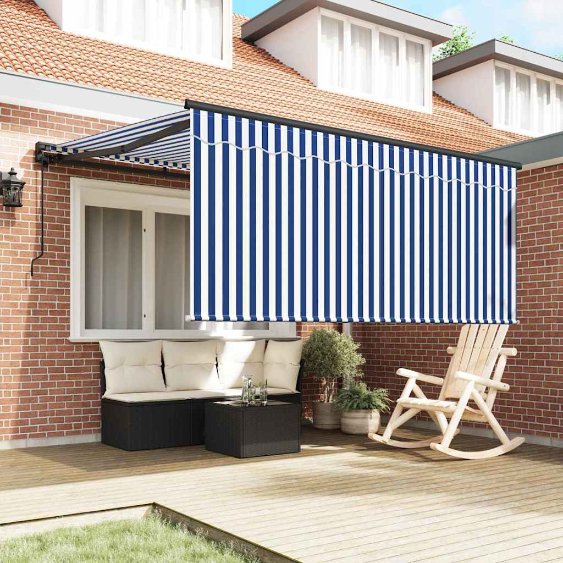 Vetoutuva markiisi Merensininen ja valkoinen 350 x 250 cm