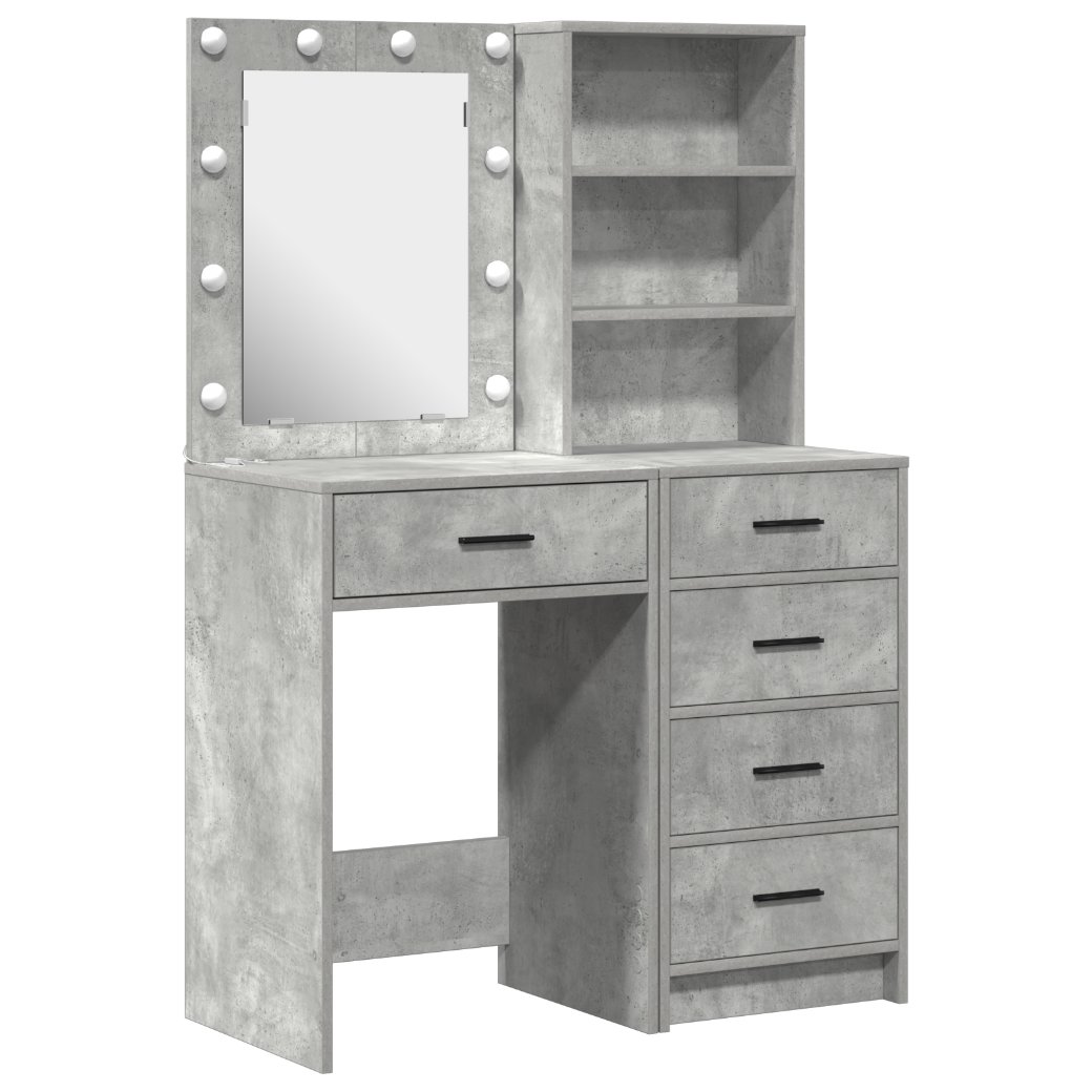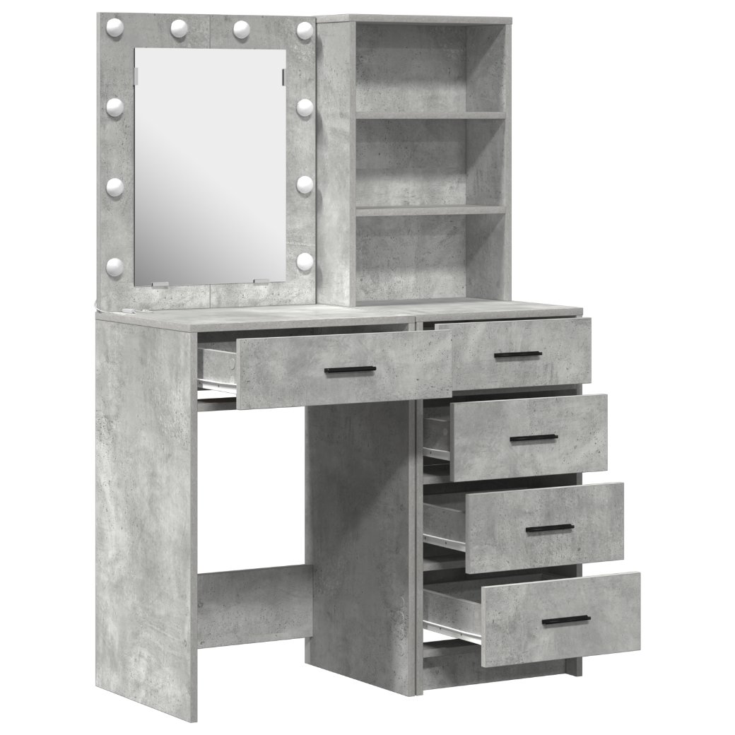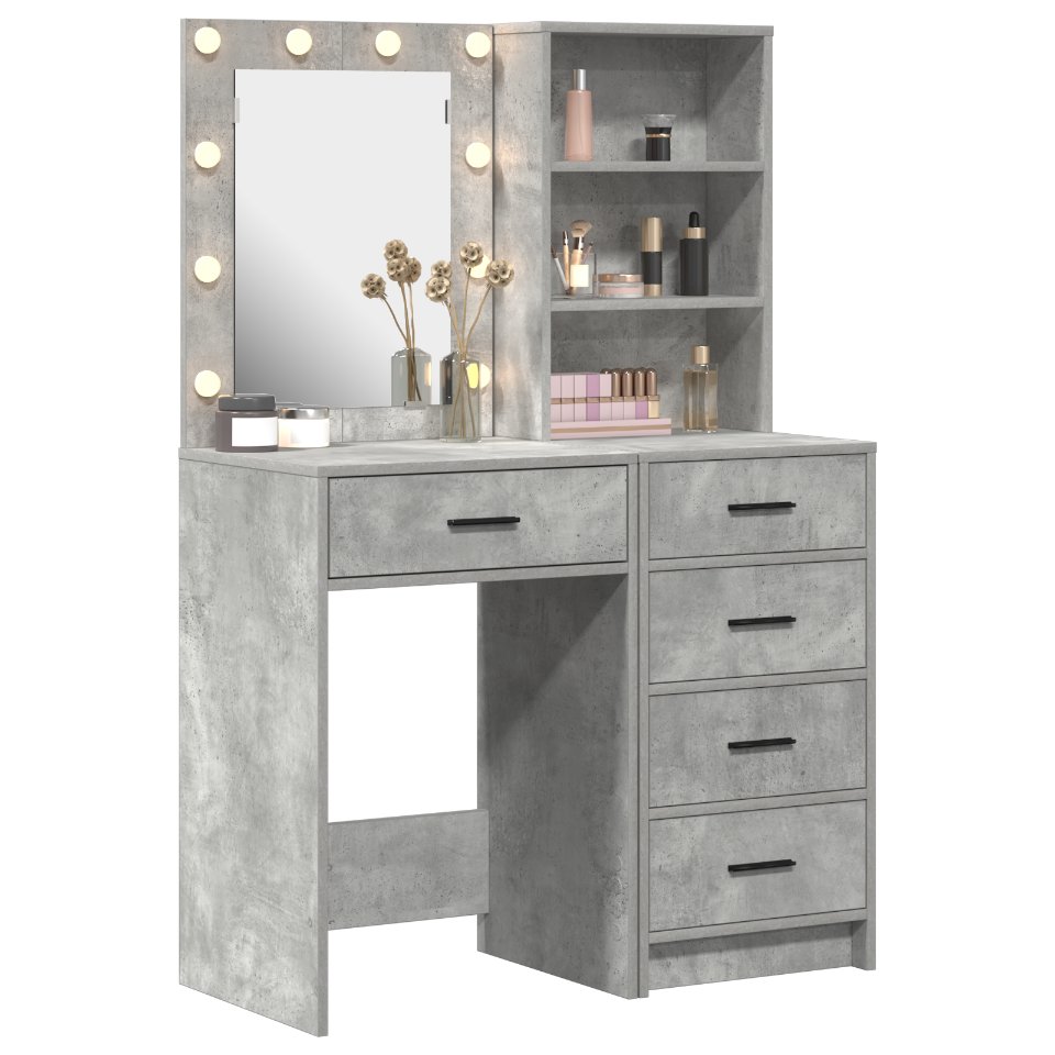 Tämä betoniharmaa meikkipöytä yhdistää tyylin ja käytännöllisyyden, muuttaen kauneudenhoitoaikasi paremmaksi. Moderni ilme sopii helposti mihin tahansa tilaan, erityisesti makuuhuoneisiin tai pukeutumishuoneisiin, joissa mukavuus ja tyyli ovat tärkeitä.