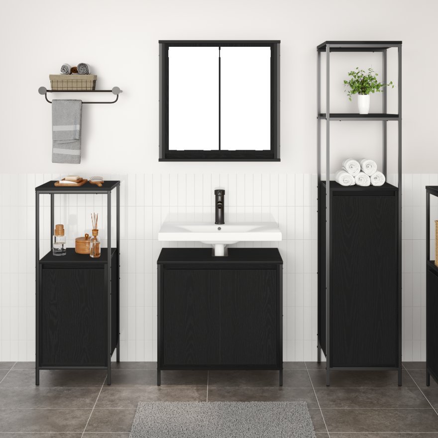 vidaXL 3-osainen Kylpyhuoneen Huonekalusetti Musta Tammi Tekninen Puu