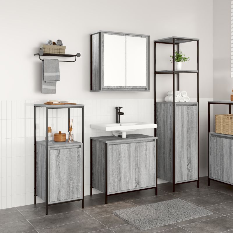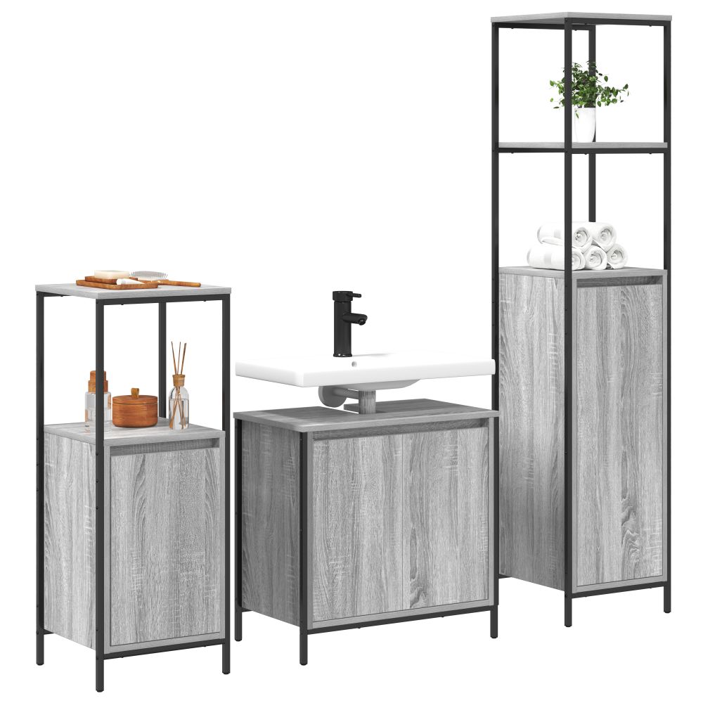 vidaXL 3-osainen kylpyhuonekalustesarja, harmaa sonoma vaneri