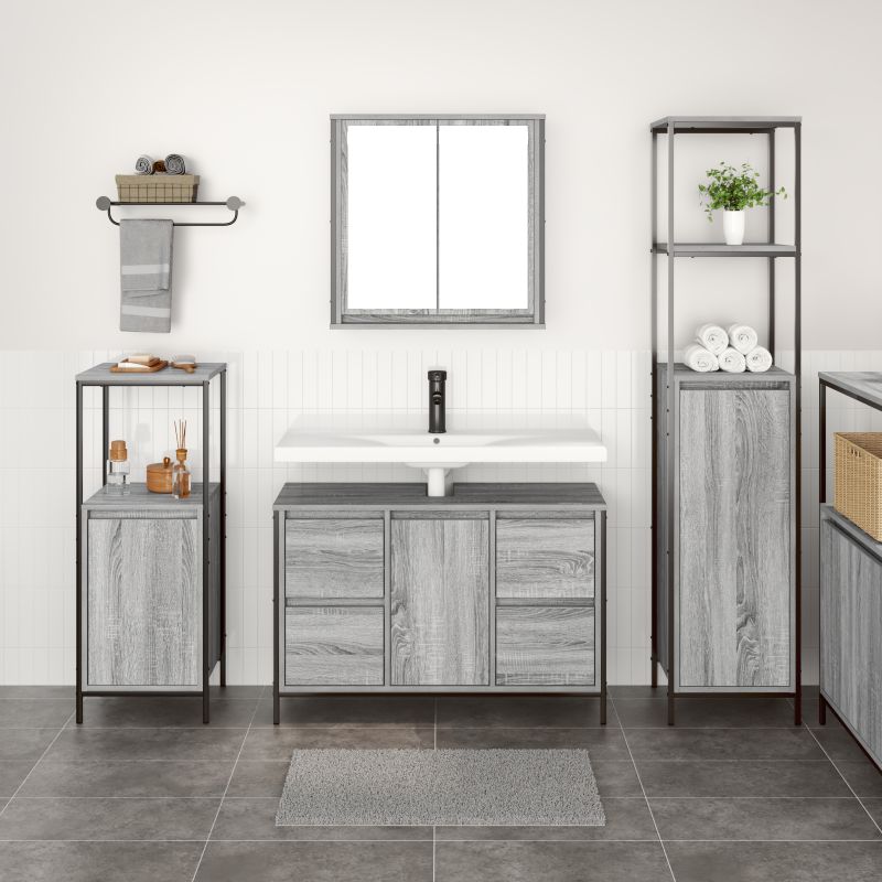 vidaXL 3-osainen kylpyhuonekalustesetti, harmaa Sonoma-tekninen puu