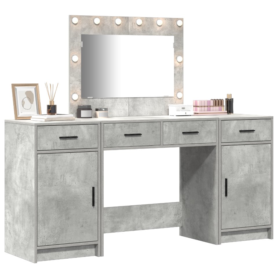 Tämä betoniharmaa meikkipöytä peilillä on must-have lisä moderniin meikkihuoneeseen tai makuuhuoneeseen. Se on täydellinen henkilökohtaiseen hygieniaan ja valmistautumiseen. Tyylikkään, kiillotetun pinnan ansiosta tilasta tulee vielä viihtyisämpi, ja saat oman paikan meikeillesi.