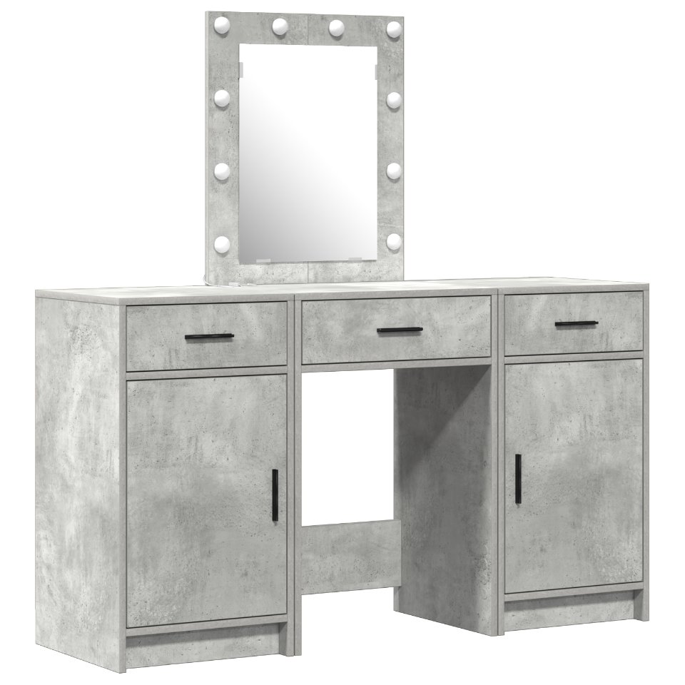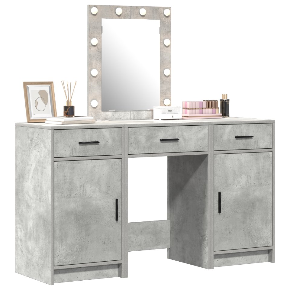 vidaXL 3-osainen Meikkipöytäsetti LED-valolla, Betoni Harmaa Tekninen Puu