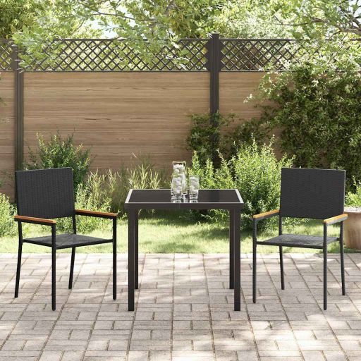 vidaXL 3-osainen puutarha ruokailusarja mustasta polyrottingista