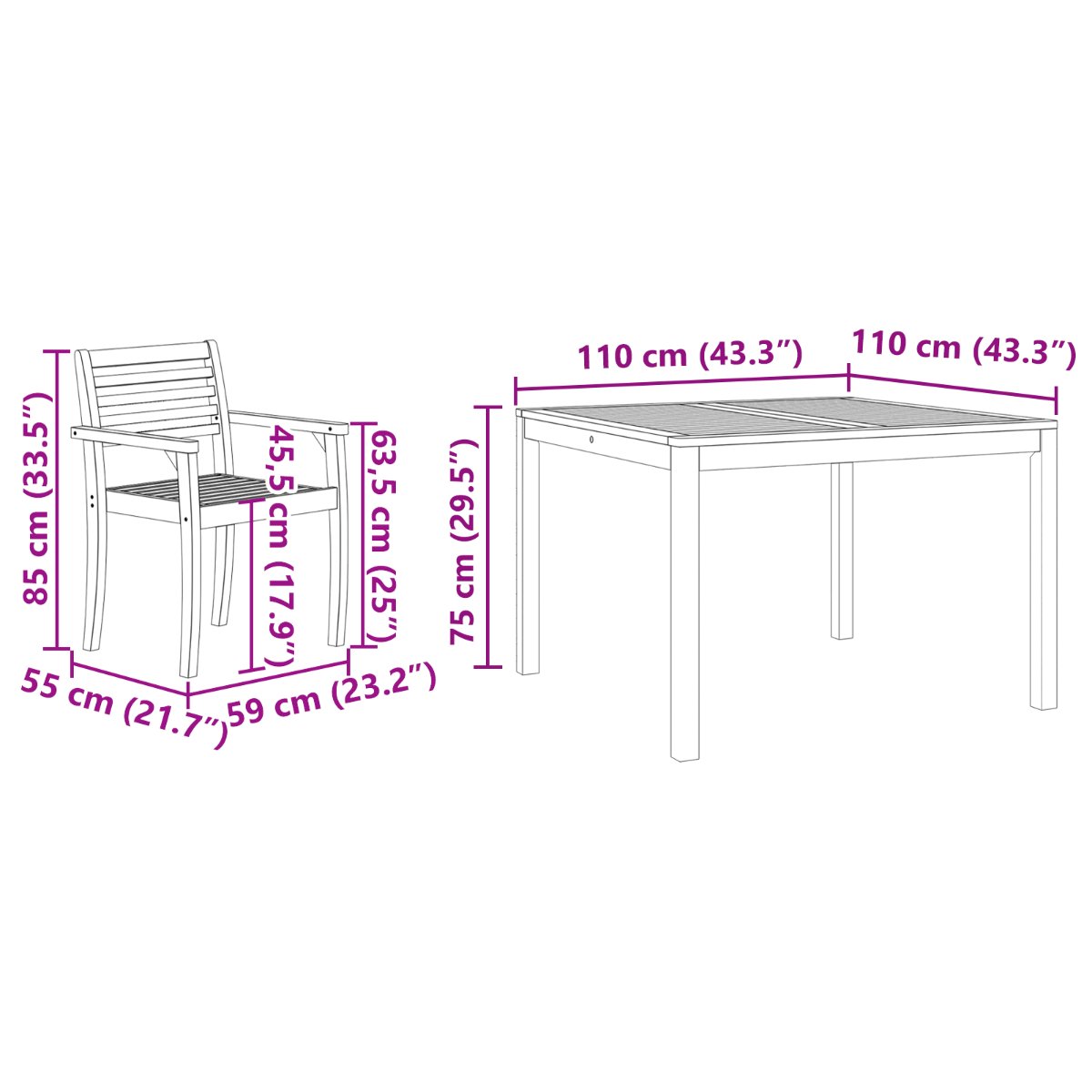 • Kestävä ja Luotettava: Massiivisen akaasiapuun pöytälevy kestää hyvin sääolosuhteita, tarjoten kestävän pinnan aterioille ja rentoutumiselle.