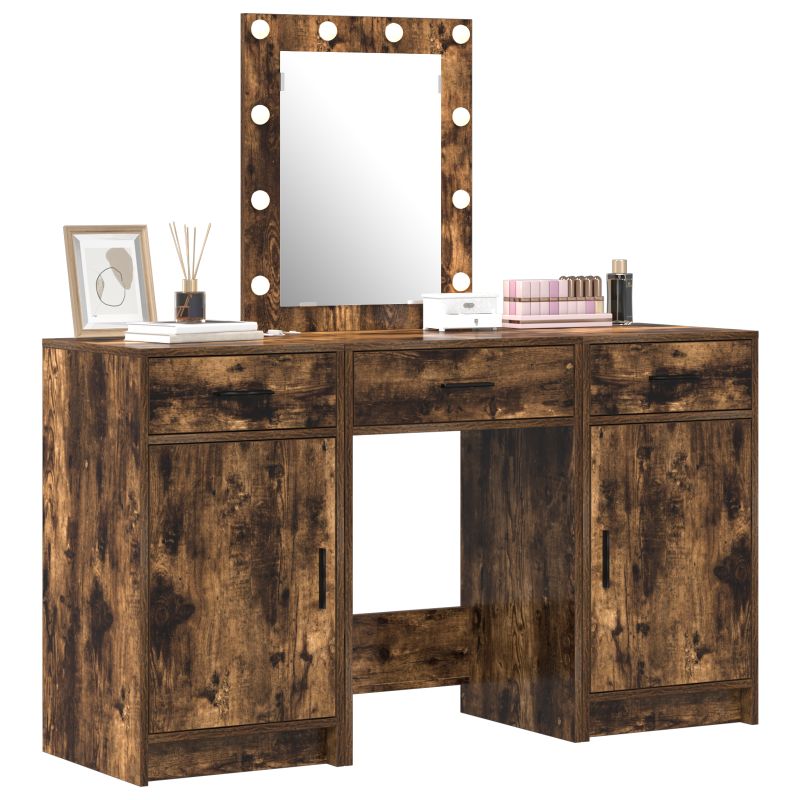 Tämä ihana meikkipöytä savutetussa tammiviimeistelyssä on juuri se, mitä makuuhuoneesi tarvitsee. Se yhdistää toiminnallisuuden ja tyylin helposti. Sulavan pinnan ja upean peilin ansiosta se tekee kauneusrutiineistasi entistä mukavampia ja sulautuu loistavasti sisustukseesi.