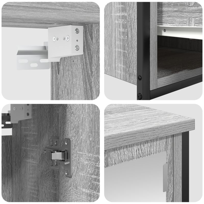 Tää moderni kylpyhuoneen säilytyskaappisarja tulee osina, jotka on suunniteltu säästämään tilaa samalla kun ne tarjoavat runsaasti tilaa sun hygieniatuotteille ja kylpyhuoneen tarvikkeille. Tyylikkään mattapinnan ja harmaa sonoma värin ansiosta, nää kaapit kuuluu moderniin sisustukseen, ja ovat loistava lisä mihin tahansa kylpyhuoneeseen.