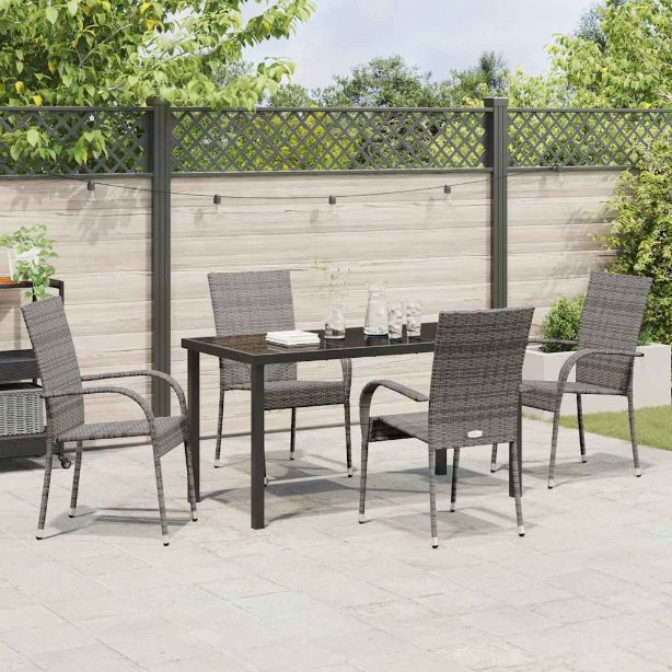 Tämä puutarhakalustesetti yhdistää tyylin ja käytännöllisyyden täydellisesti ulkona oleskeluun. Setissä on älykkäästi suunnitellut pinottavat tuolit, joita on tehty kestävästä polyrottinkista. Ne näyttävät hyvältä ja ovat käytännöllisiä päivittäiseen käyttöön.