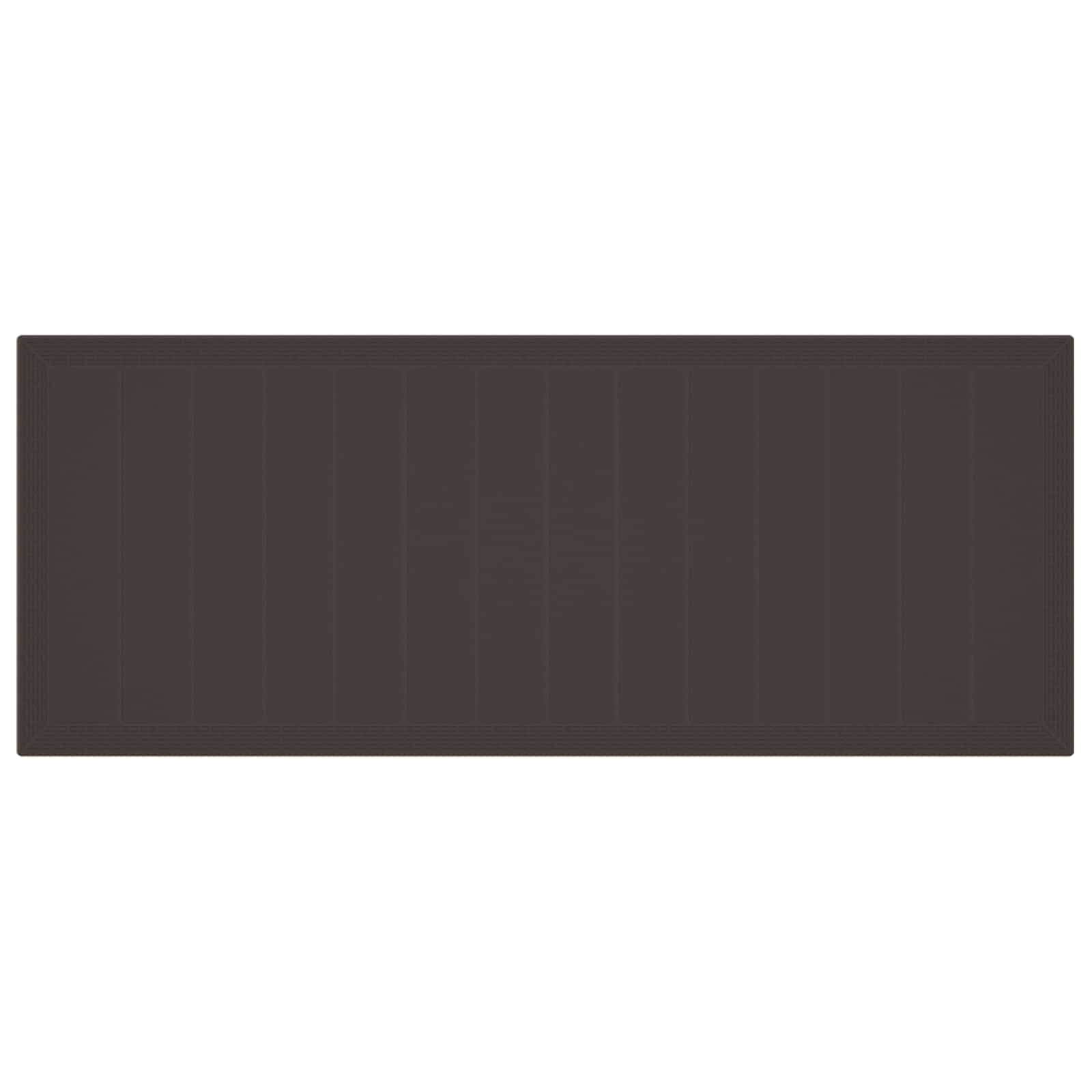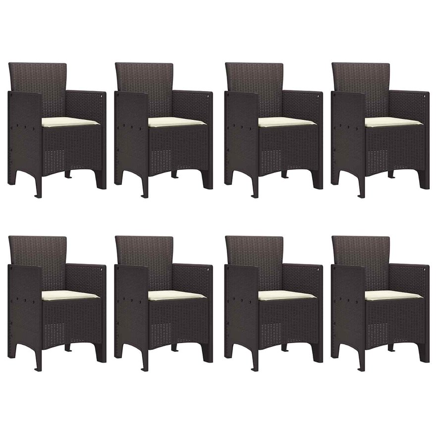 Tämä puutarhan ruokailusetti on tehty kestävästä polyrottingista ja siinä on tilava suorakaiteinen pöytä kahdeksalla mukavalla tuolilla, joten se soveltuu erinomaisesti ulkona syömiseen. Modernilla tyylillä ja rikkaalla ruskealla värillä se tuo varmasti ilmettä mihin tahansa ulkotilaan, luoden trendikkään ja toimivan alueen kokoontumisiin, grillijuhliin ja perhejuhliin.