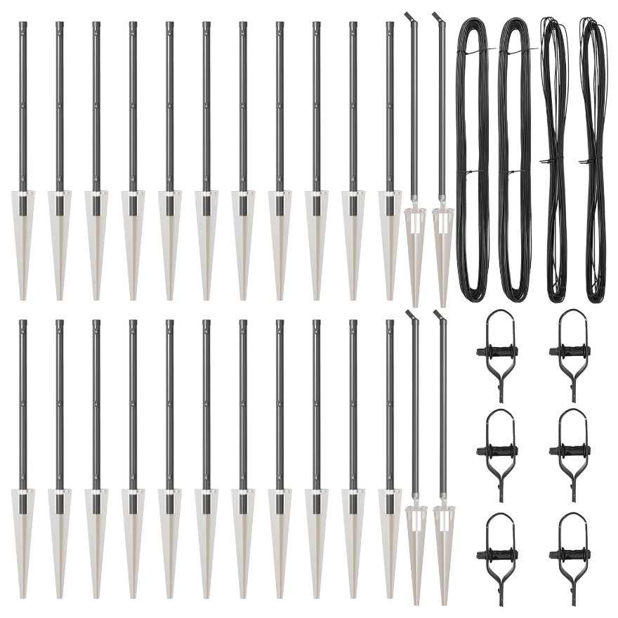 • Rakennettu kestämään: Valmistettu kestävästä metallista ja muovista, tämä aidan piikkisetti on pitkäikäinen, mikä varmistaa aitasi pysyvän vahvana kaikissa sääolosuhteissa. Tukeva muotoilu tukee joustavia aitarakennuksia.