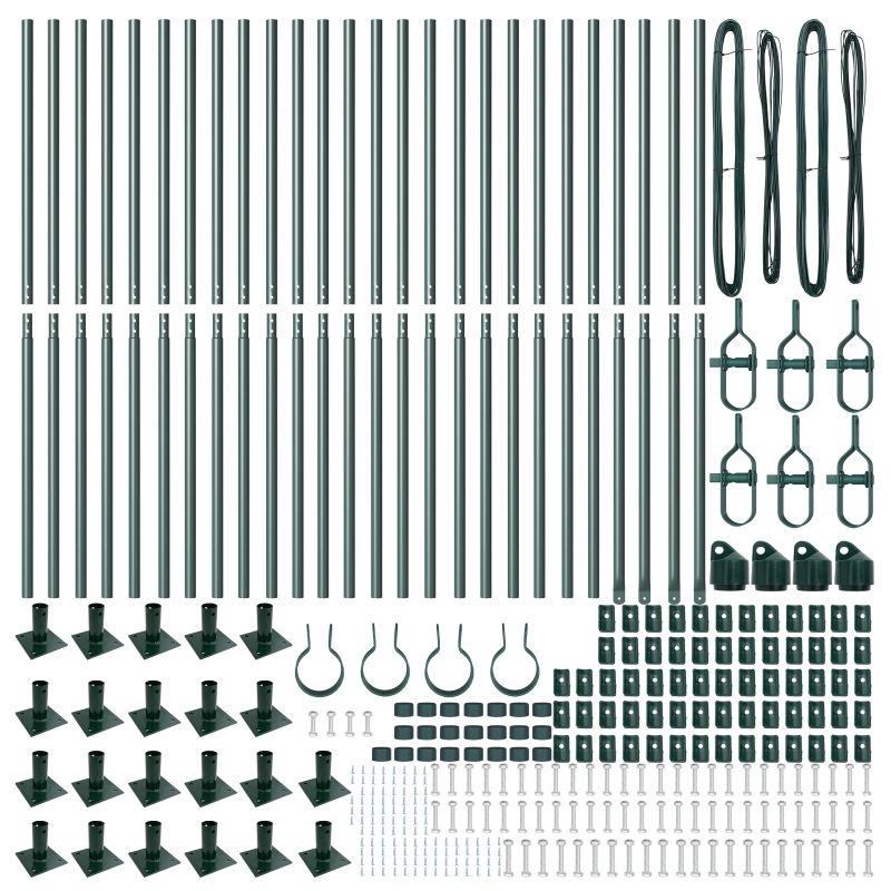 • Delivery Contains: 22 x Pylväs, 4 x Kulmapylväs, 22 x Pohjalevy, 22 x Muovipää, 66 x Muovinen Jännitteen Tukija, 4 x Kulmapylvään Kansi, 4 x Kulmapylvään Kiinnitys, 6 x Jännitteen Laitteet, 2 x 25 m Sitomislanka, 2 x 80 m Jännitteen Lankaa