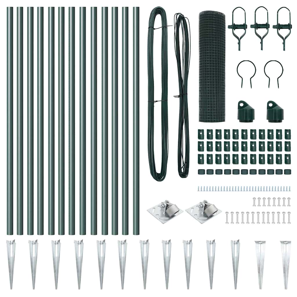 vidaXL hitsattu verkkoaita 13 piikkipylvään kanssa Vihreä 0.4×25 m Teräs