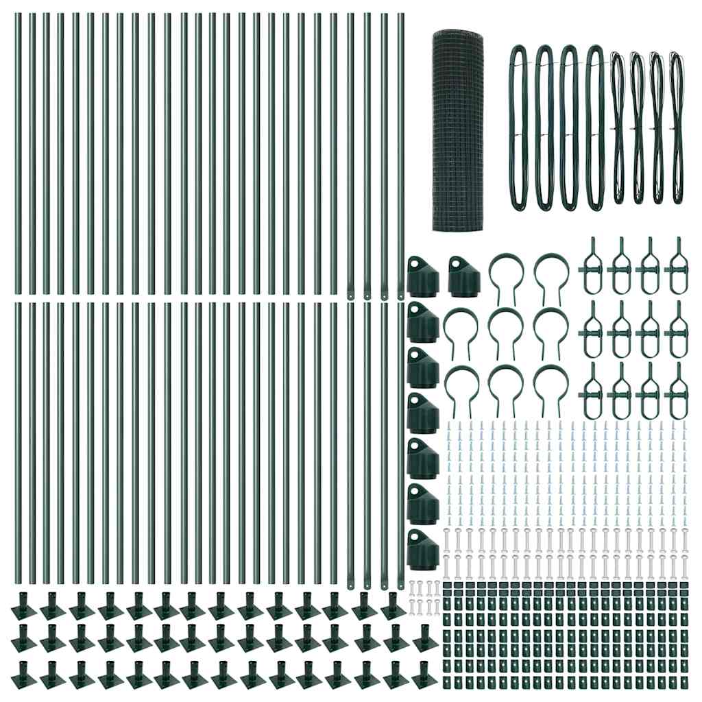 vidaXL Hitsaussaumattu Aita 13 kohotetulla pylväällä Vihreä 0.4×100 m Teräs