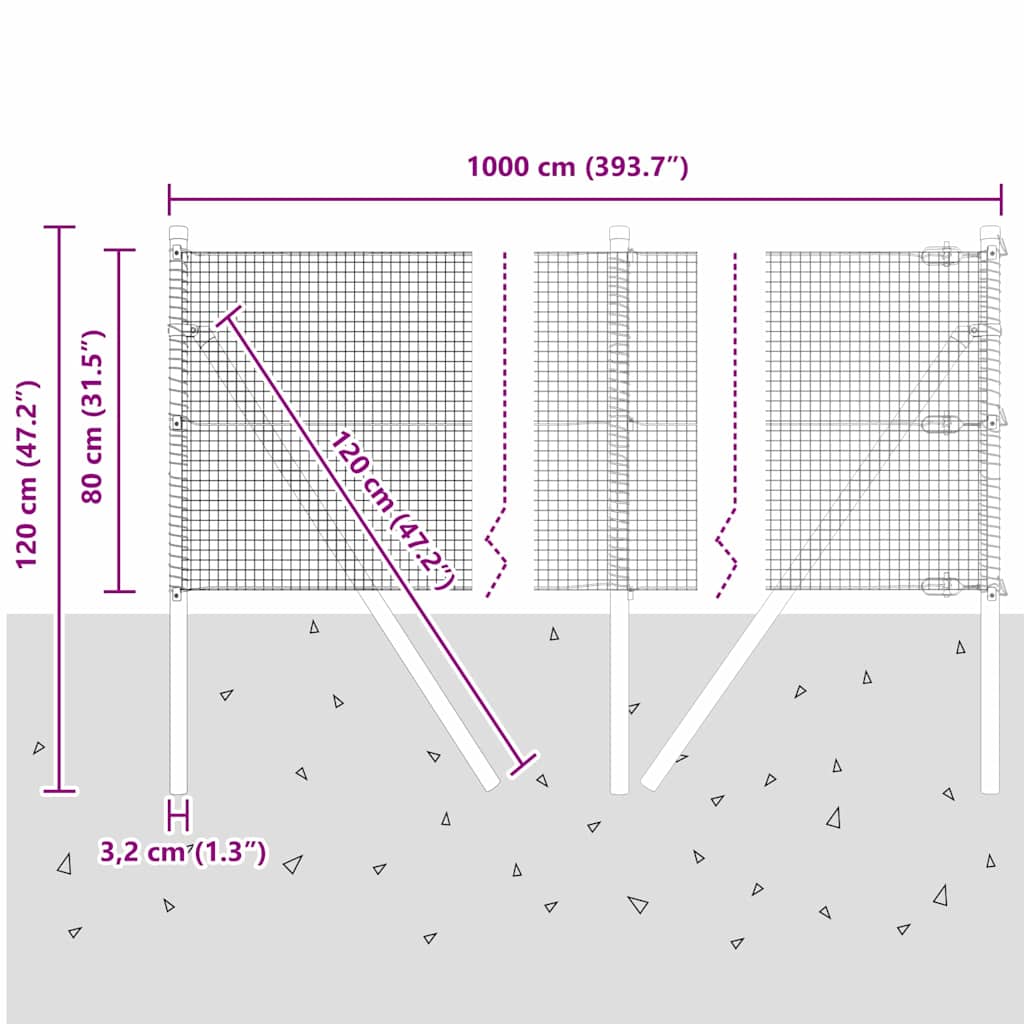 vidaXL hitsaustekniikkaverkko 7 pylväällä harmaa 0.8×10 m teräs
