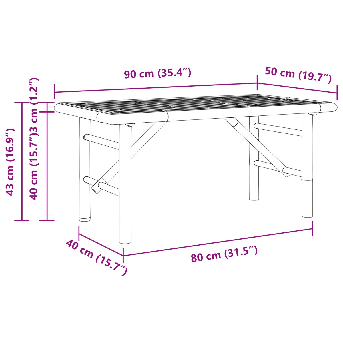 • Tyylikäs muotoilu: Sohvapöydässä on bambupinta, joka lisää tyylikkyyttä sisustukseesi.