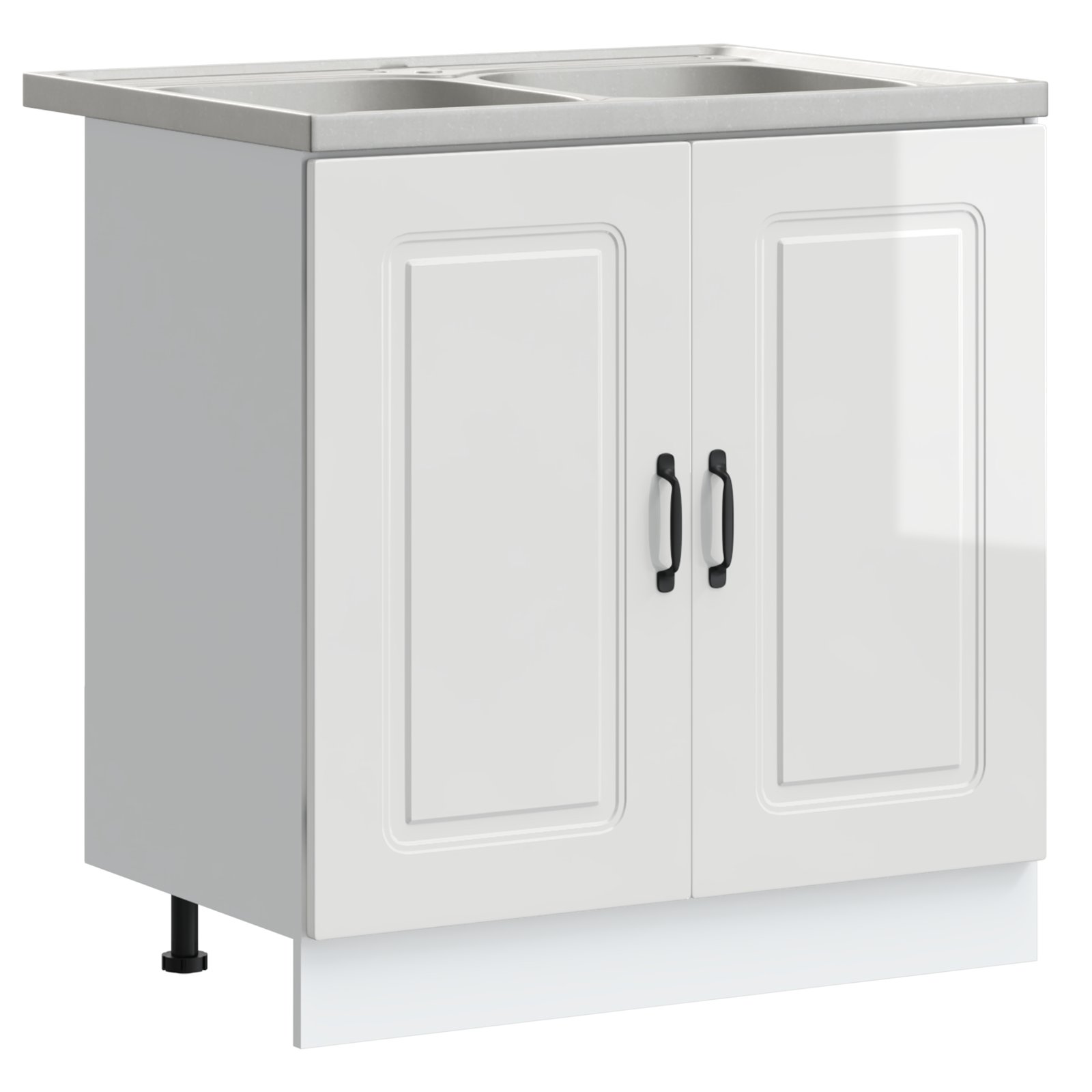 vidaXL Keittiökaappi ’Kalmar’ kahdella altaalla kiiltävä valkoinen tekninen puu