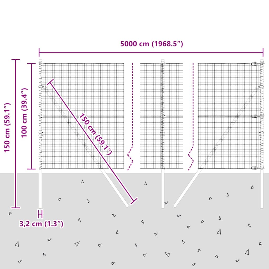 vidaXL-kohdelangallinen aita 13 pylväällä Harmaa 1×50 m Teräs