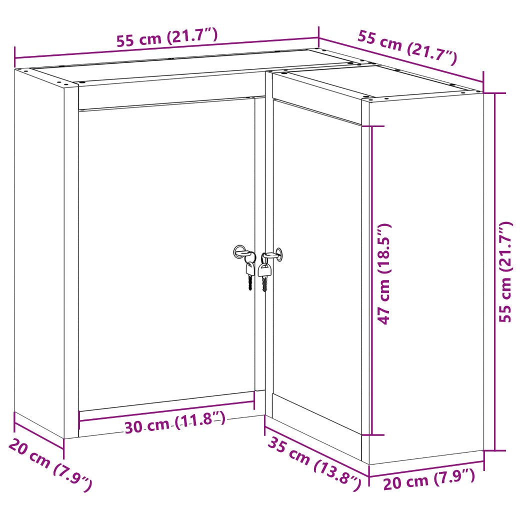 vidaXL Kulma Työkalukaappi Seinälle Kiinnitettävä ja Lukittava Punainen Teräs