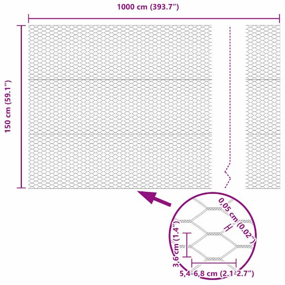 vidaXL Kuusikulmainen aita 1.5×10 m Kuumasinkitty teräs