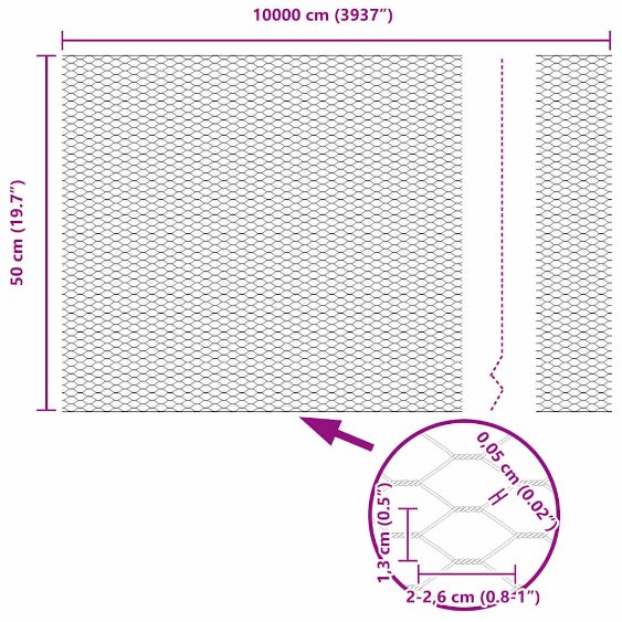 • Dimensions: 10000 x 0.05 x 50 cm (L x W x H)