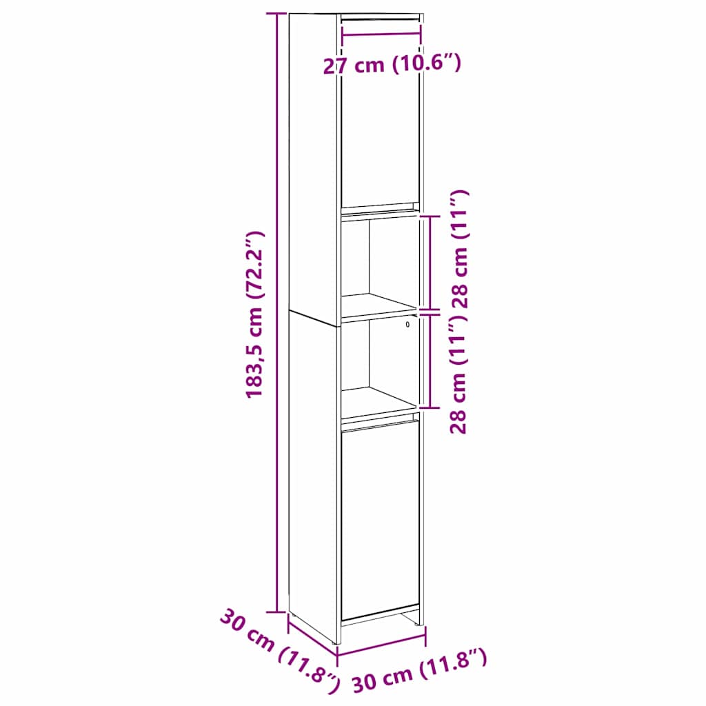 vidaXL Kylpyhuonekaappi Musta Tammi 30x30x183,5 cm Tekninen puu