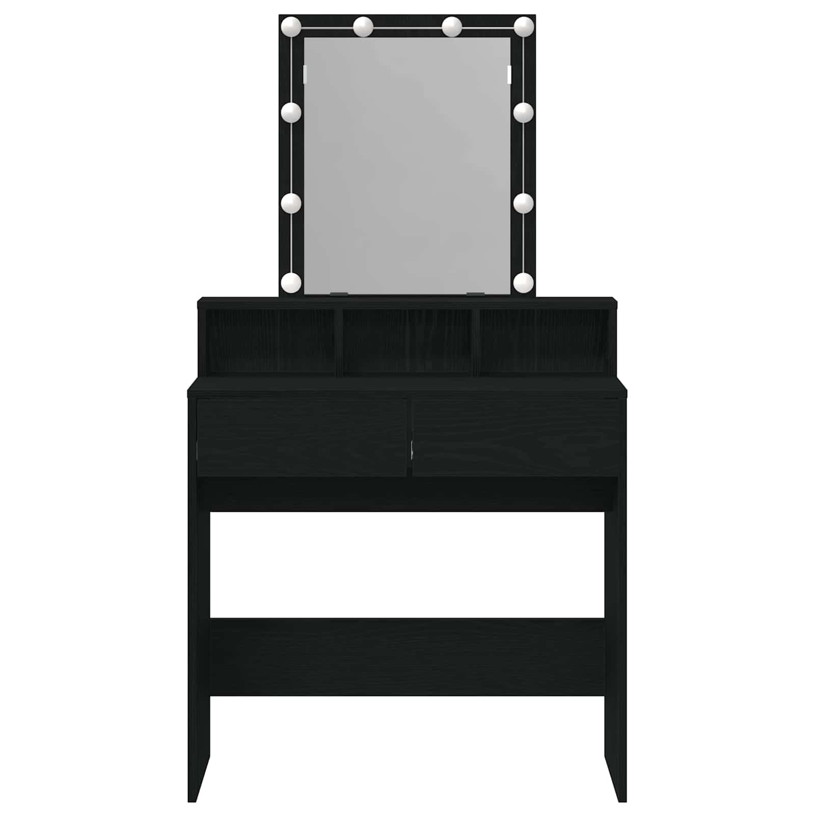 vidaXL Meikkipöytä Peilillä ja LED-valoilla Musta Tammi Teknisestä Puusta