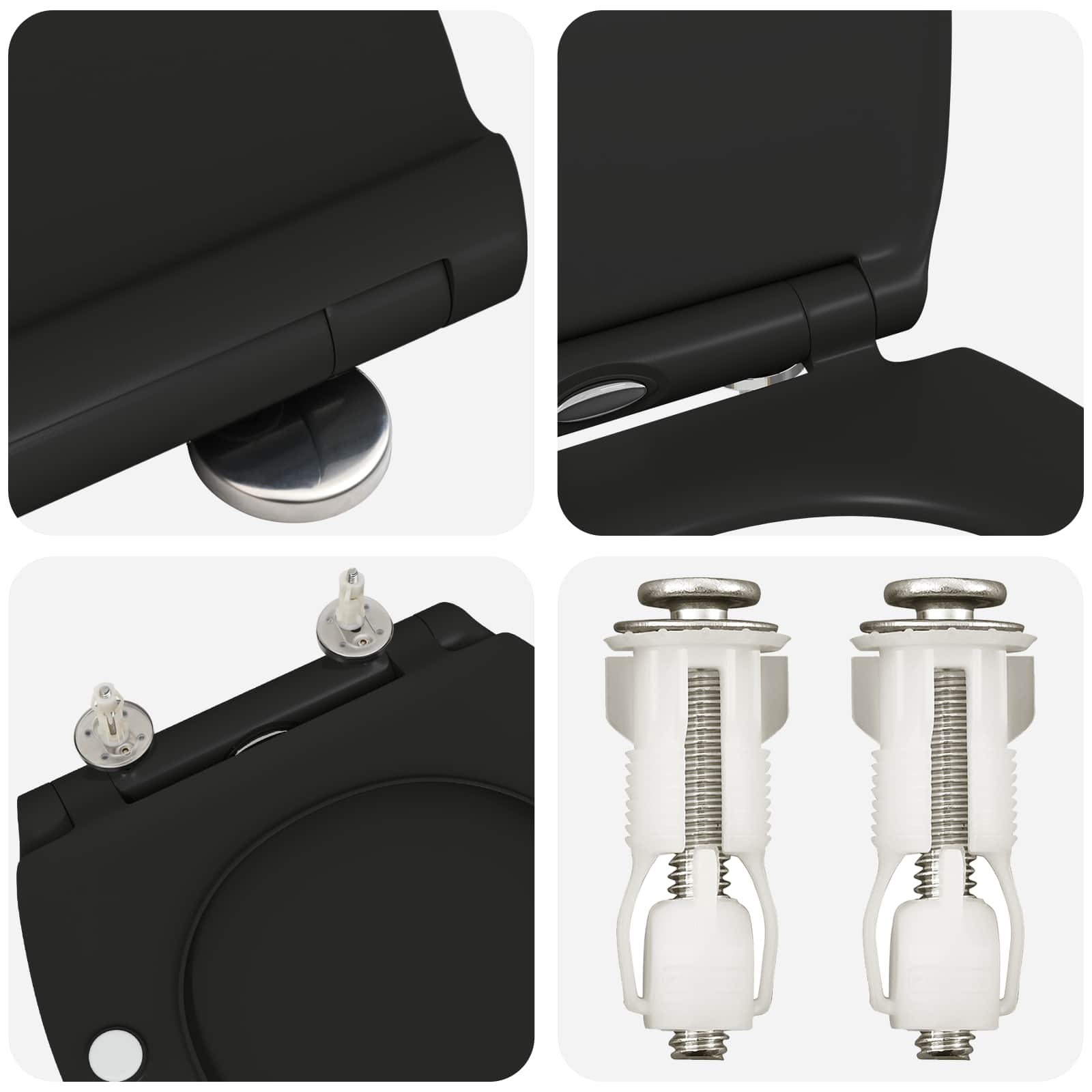 Tämä musta standardi ovaali WC-istuin yhdistää käytännöllisyyden ja modernin tyylin. Se on loistava vaihtoehto aikuisille, jotka kaipaavat laatua kylpyhuoneeseensa. Kestävä muovi ja sileä mattapinta tuovat mukautuvaa mukavuutta ja tyyliä jokaiseen kylpyhuoneeseen.