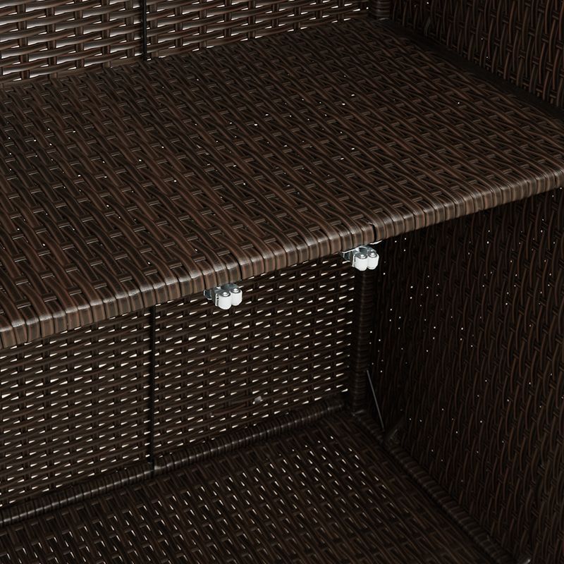 Tämä iso rottinkinen säilytyskaappi on loistava ratkaisu sekä sisä- että ulkotilojen organisointiin. Valmistettu synteettisestä polyrottingista, se yhdistää toimivuuden ja modernin tyylin, mikä tekee siitä erinomaisen lisän talvipuutarhaan tai autotalliin. Syvä ruskea väri ja teksturoitu pinta tarjoavat runsaasti tilaa ja kohottavat kotisi tai puutarhasi tyyliä.