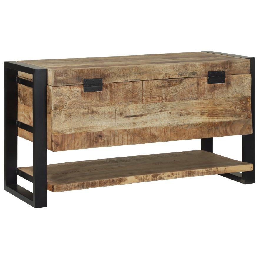Tää rustiikkinen teollinen säilytyslipas yhdistää tyylin ja toimivuuden. Se on mainio lisä olohuoneeseen, makuuhuoneeseen tai käytävään. Karkeasta mangopuusta ja mustasta jauhemaalatusta metallirungosta tehtynä se tuo teollista tunnelmaa ja tarjoaa runsaasti säilytystilaa tavaroillesi.