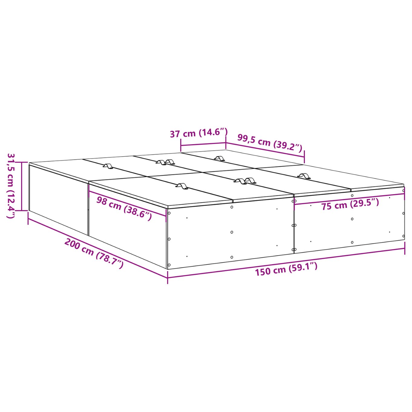 vidaXL Säilytystilallinen sängynrunko Savutettu Tammi 150×200 cm
