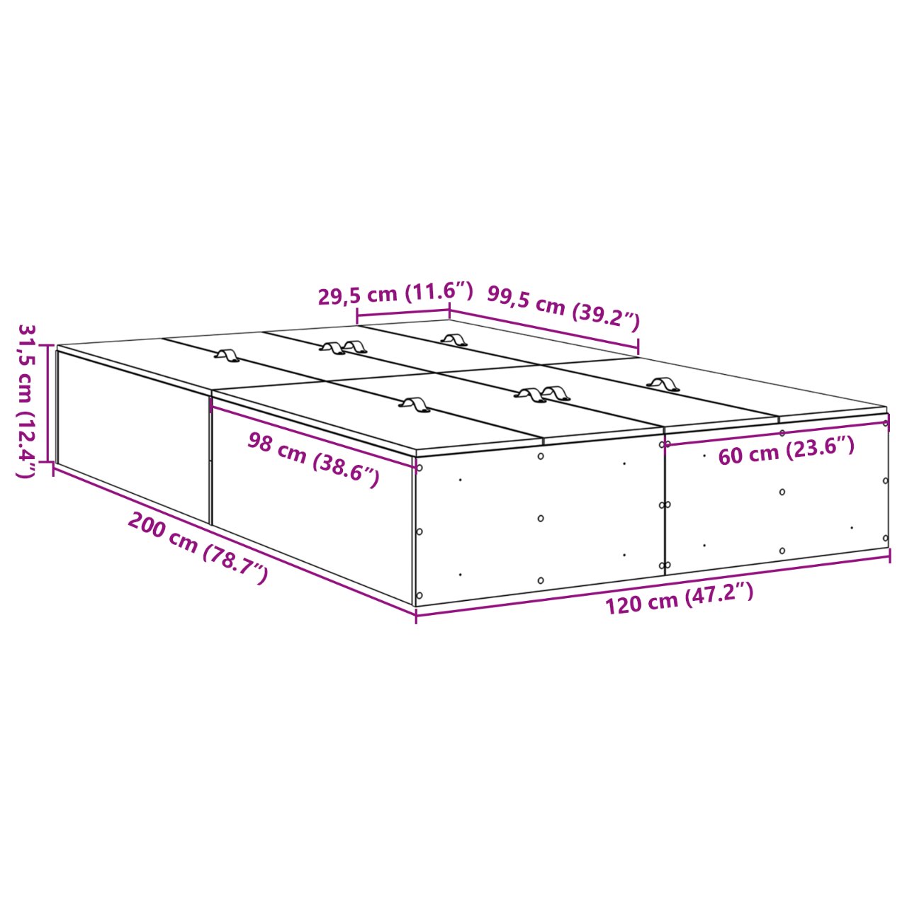 • Dimensions: 200 x 120 x 31.5 cm (L x W x H)