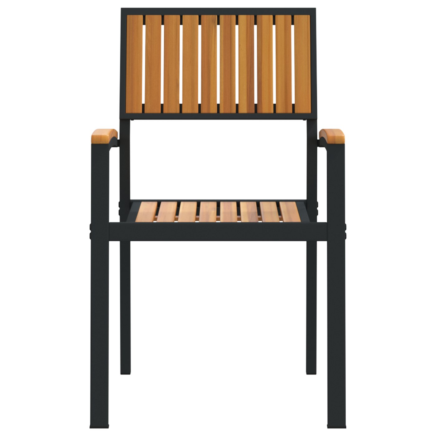 Tämä ulko puinen tuolisarja yhdistää kaiken tyylikkäästi, tehden siitä täydellisen lisän parvekkeelle tai puutarhaan. Nämä tuolit on suunniteltu mukavuutta ajatellen, ja ne näyttävät hyvältä yhdistelmässä luonnonpuuta ja mustaa metallia.