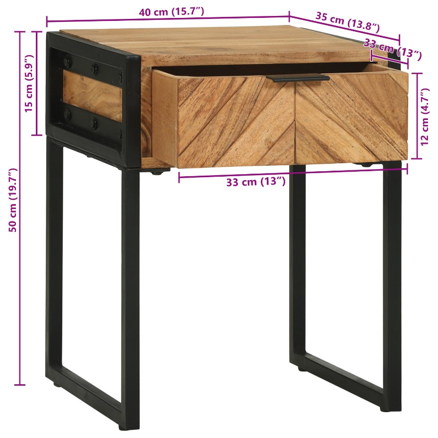 vidaXL Yöpöytä 40x35x50 cm Täysi Akaasiapuu