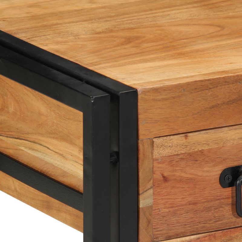 • Kestävä rakenne: Täysistä akaasiapuista ja raudasta valmistettu yöpöytä on kestävä ja tyylikäs. Laadukkaat materiaalit takaavat pitkän käyttöiän, jolloin se on tukeva lisä huonekalukokoelmaasi.