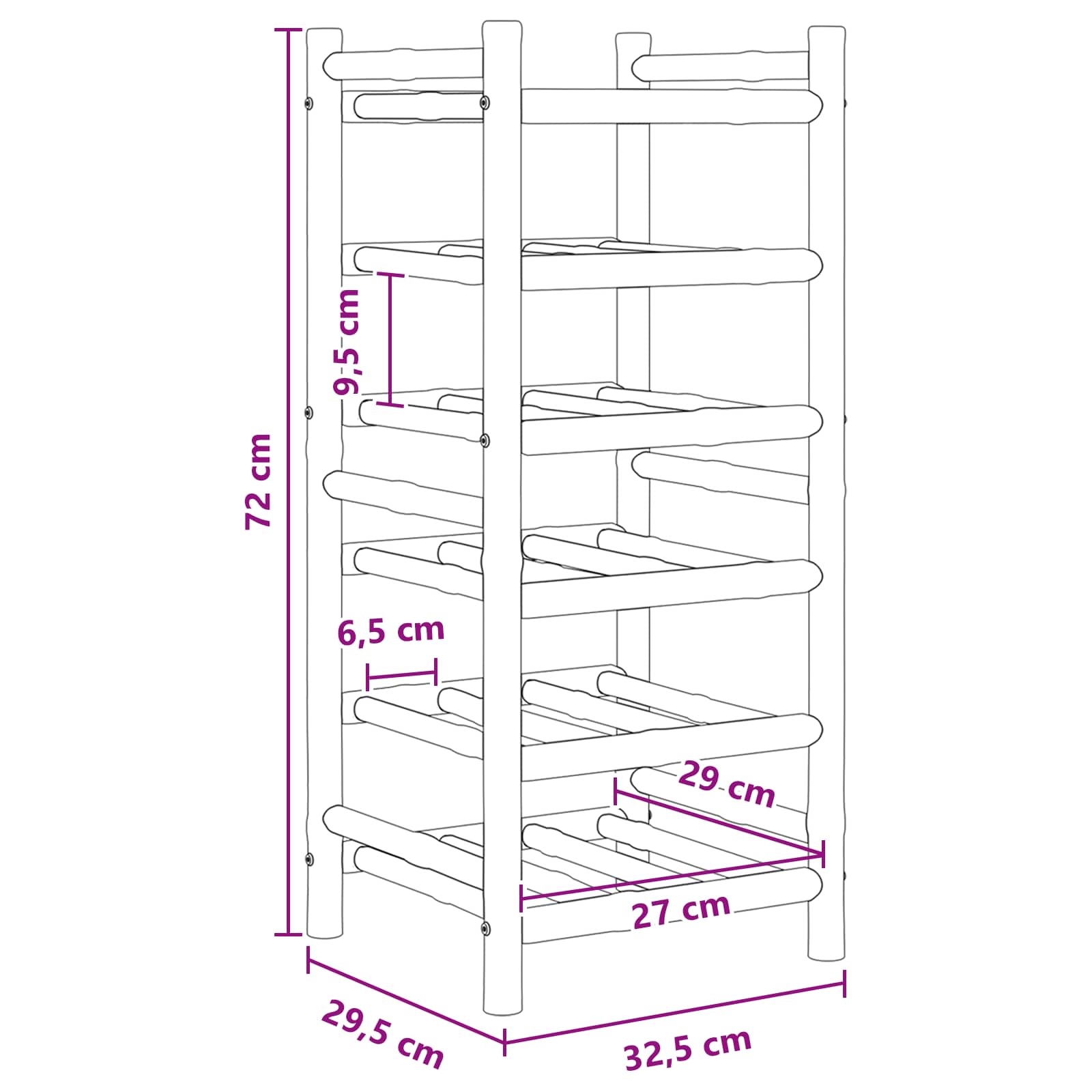 Tämä moderni viiniteline on ihan mahtava lisä kotiin! Se on tehty niille, jotka arvostaa sekä tyyliä että käytännöllisyyttä. Luonnollinen bambumateriaali antaa sille kivan ja hillityn ilmeen, joka sopii eri sisustustyyleihin. Erinomainen valinta viinin tykkääjille, se pitää kokoelmasi järjestyksessä ja näyttää samalla hienolta.