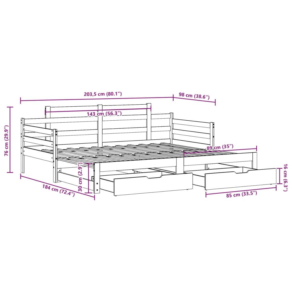 Vuodesohva rullilla ja laatikoilla ei patjaa 90×200 cm