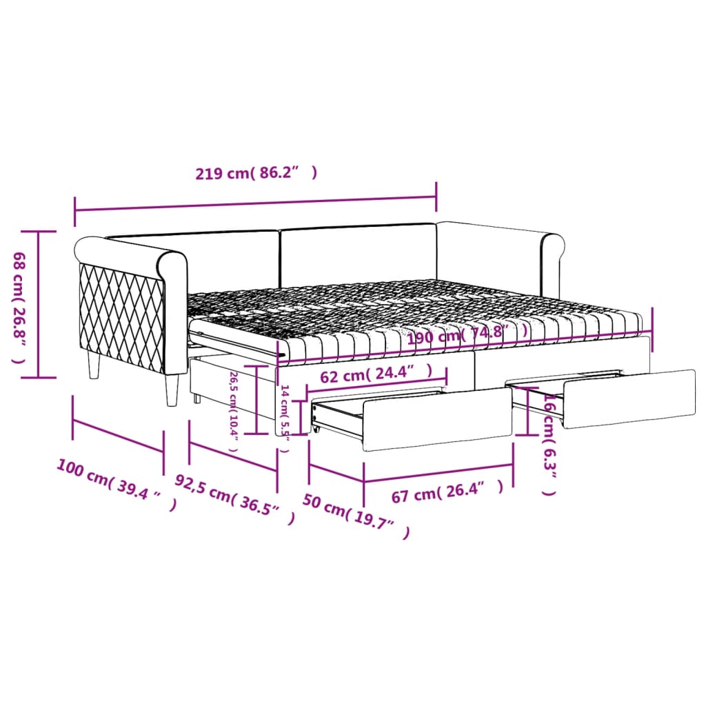 Tämä 2-in-1 vuodesohva rullilla ja laatikoilla toimii sekä sohvana että sänkynä. Se on käytännöllinen ja katseet vangitseva lisä olo- tai makuuhuoneeseen.