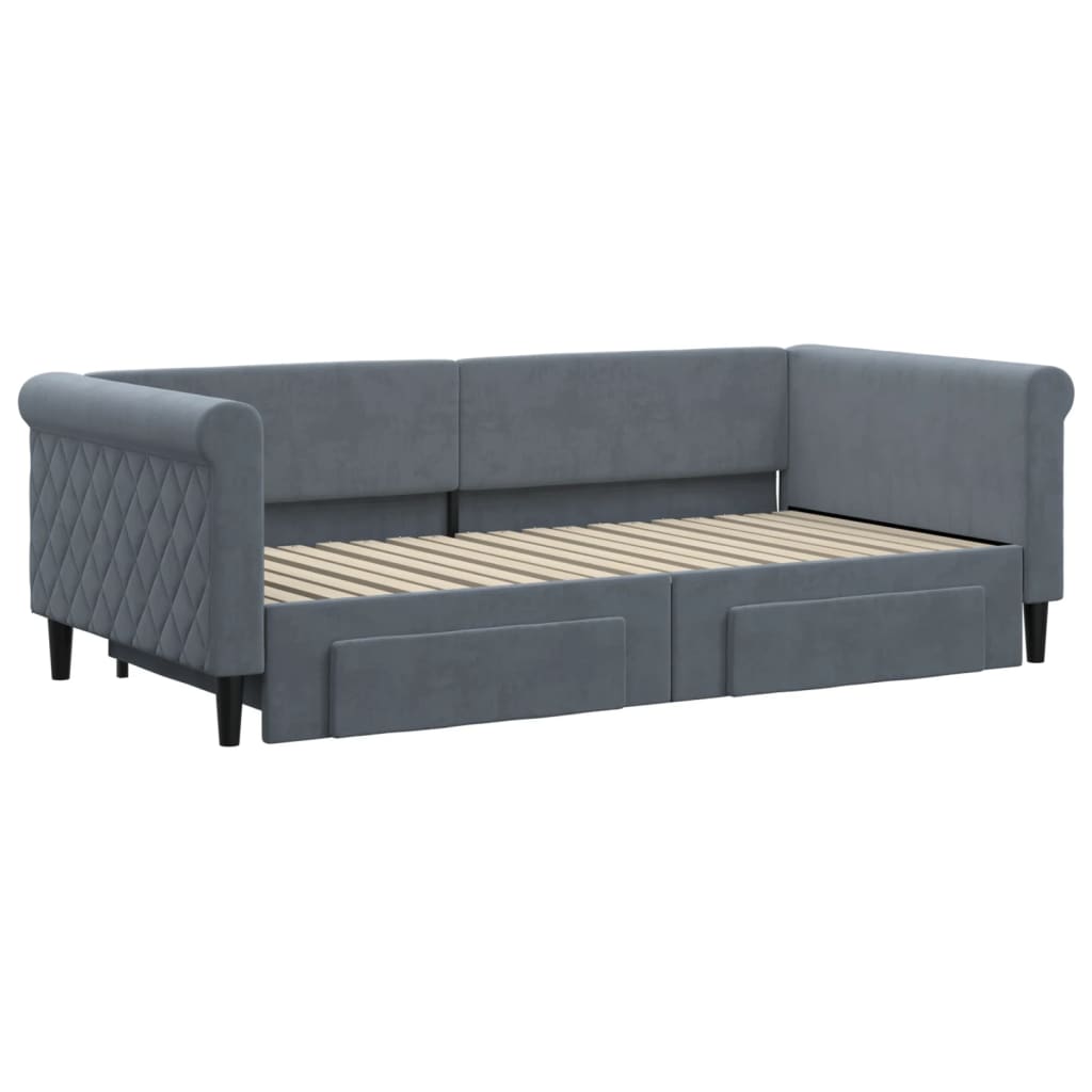 Vuodesohva rullilla ja laatikoilla t.harmaa 90×190 cm sametti