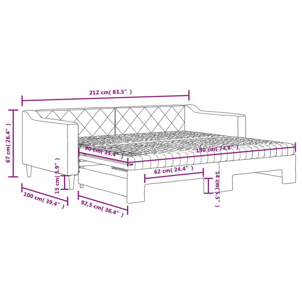 • Kestävä kangas ja vankka rakenne: Tässä vuodesohvassa on tukeva puusta ja metallista valmistettu runko, joka on verhoiltu kestävällä ja mukavalla kankaalla.