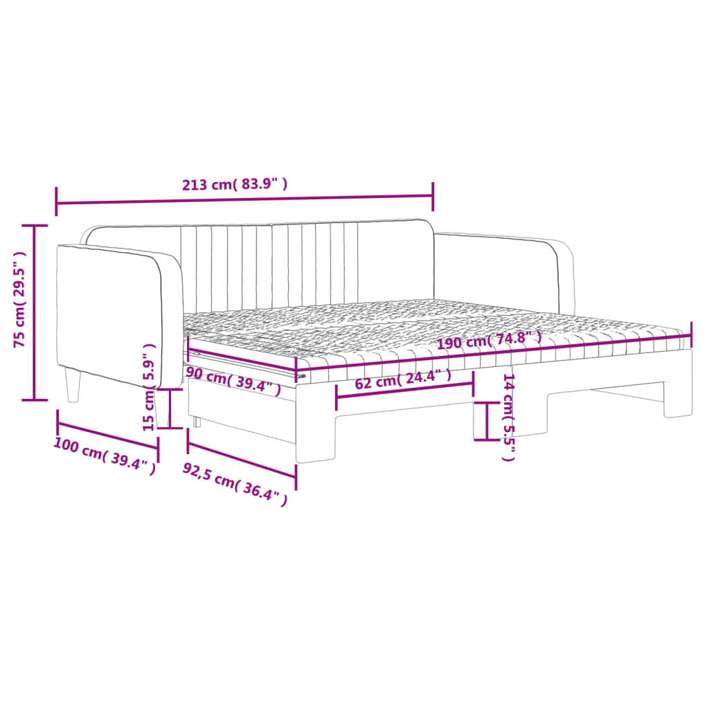 Vuodesohva rullilla ja patjoilla tummanharmaa 90×190 cm sametti