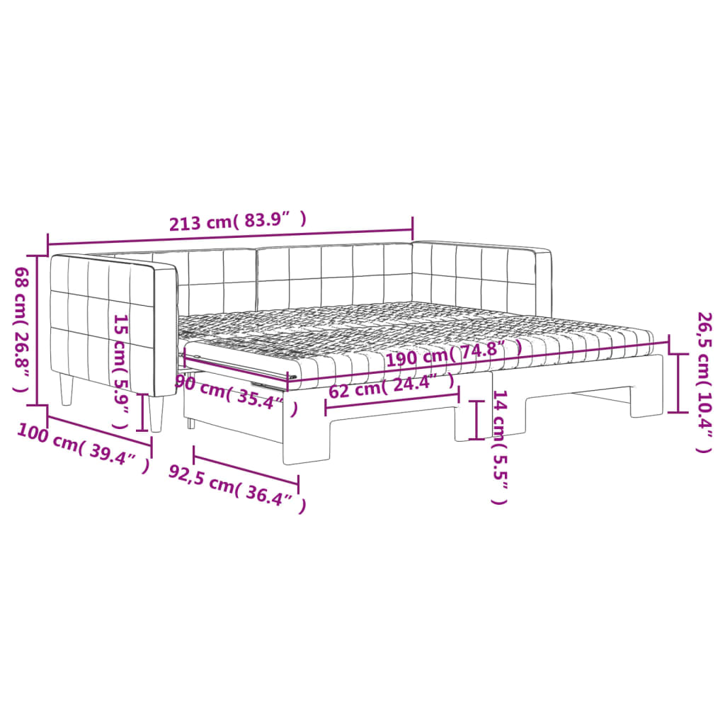 • Kestävä sametti ja vankka rakenne: Tässä päiväsohvassa on tukeva puusta ja metallista valmistettu runko, joka on verhoiltu kestävällä ja mukavalla sametilla.