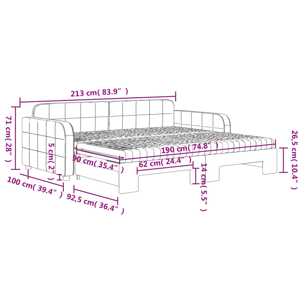 Vuodesohva rullilla ja patjoilla tummanharmaa 90×190 cm sametti
