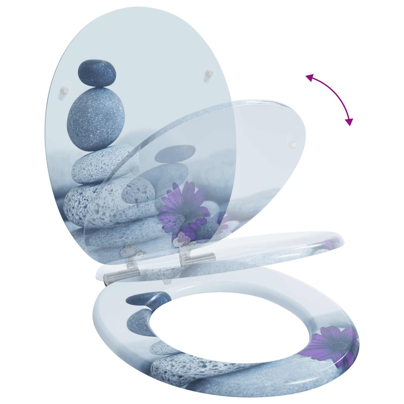 • Pehmeä sulkeutuva kansi Tämän ominaisuuden ansiosta kansi ei kolahda äänekkäästi kiinni. Pehmeä sulkeutuminen estää loukkaantumisia ja pidentää tuotteen elinikää. Erinomainen valinta koteihin, joissa on lapsia, joissa turvallisuus on tärkeää.