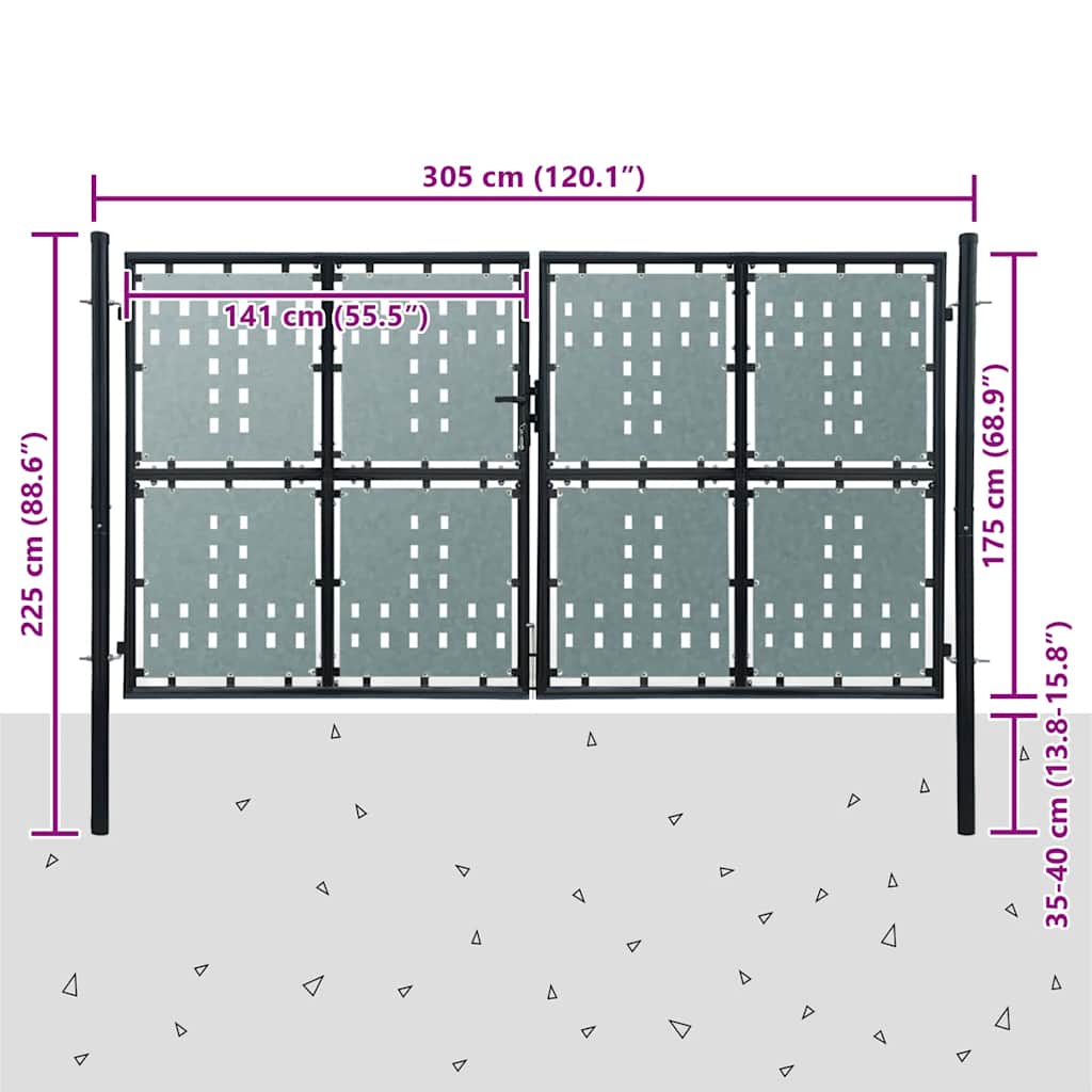 Koristeellisilla reikäkuvioilla varustetut galvanoidut levyt vahvistavat aidan runkoa, joten puutarhaporttimme lupaavat korkeatasoista turvallisuutta luoden samalla upean sisääntulon tontillesi. Lujatekoisesta teräksestä valmistettu portti on puuterimaalattu ruostetta ja korroosiota vastaan.