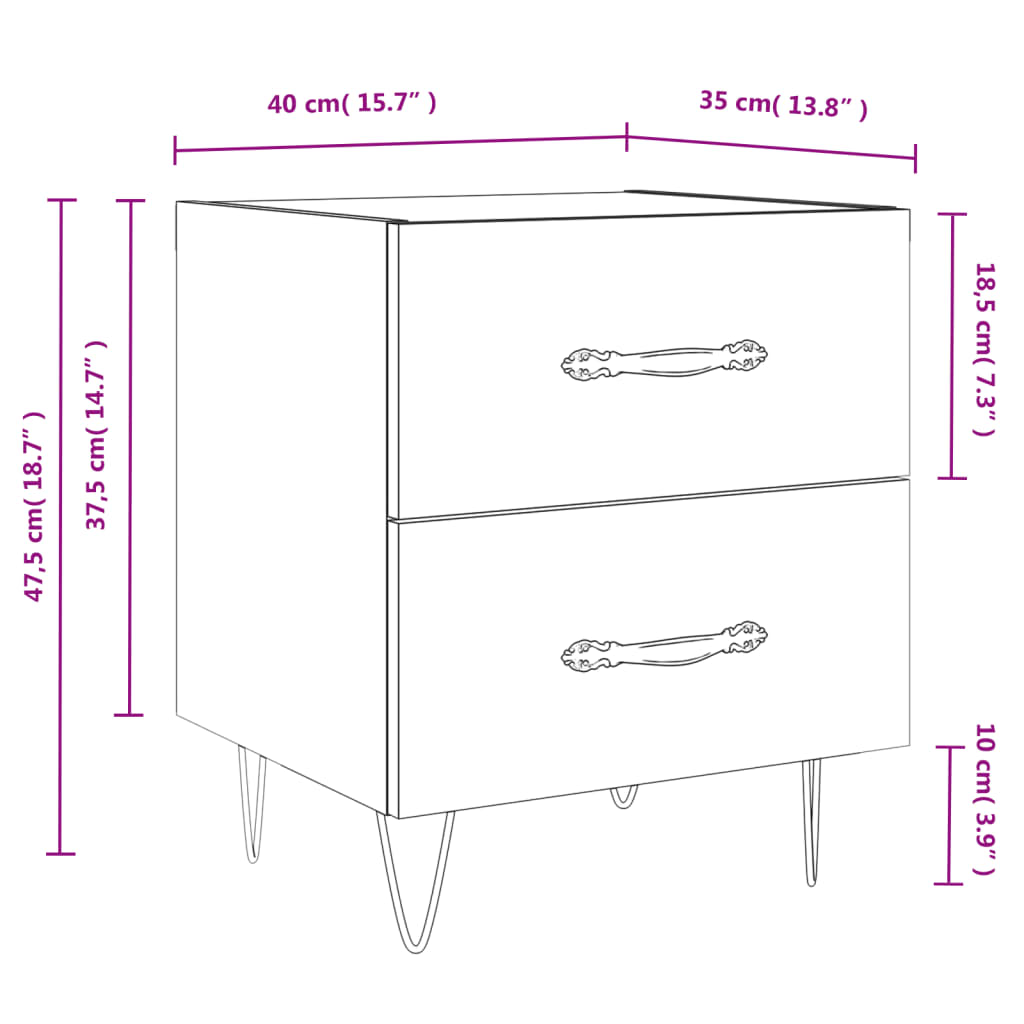 Yöpöydät 2 kpl harmaa Sonoma 40x35x47,5 cm tekninen puu