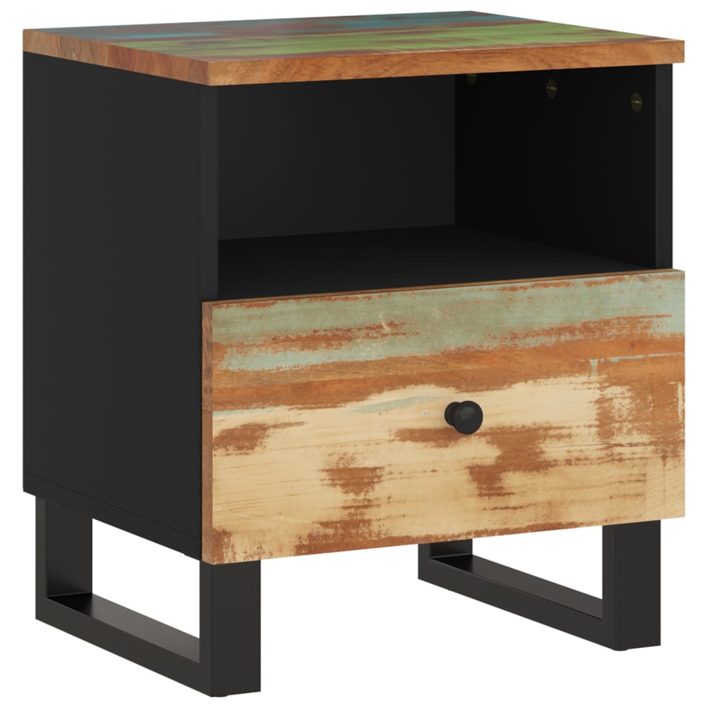 Yöpöytä kierrätetty täyspuu ja tekninen puu