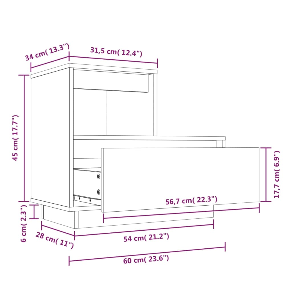 Yöpöytä valkoinen 60x34x51 cm täysi mänty