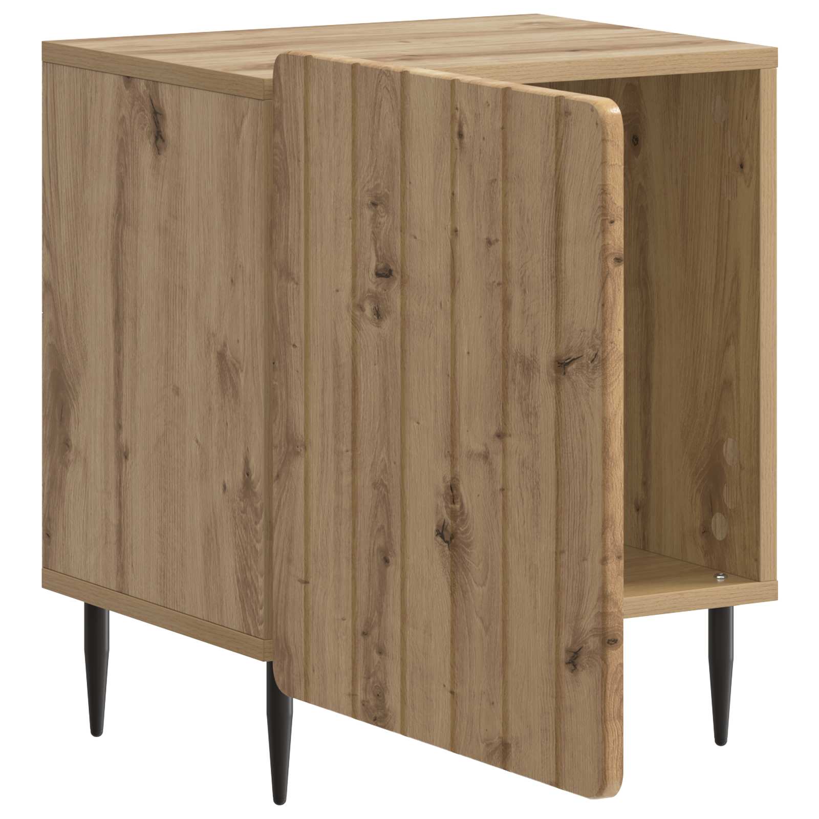 • Metallijalat tuen takaamiseksi: Kaappi nojaa vankkoihin metallijalkoihin, jotka varmistaa parhaan stabiliteetin ja pitkän käyttöiän. Musta viimeistely tuo tyylikkyyttä vintage-muotoilun rinnalle.