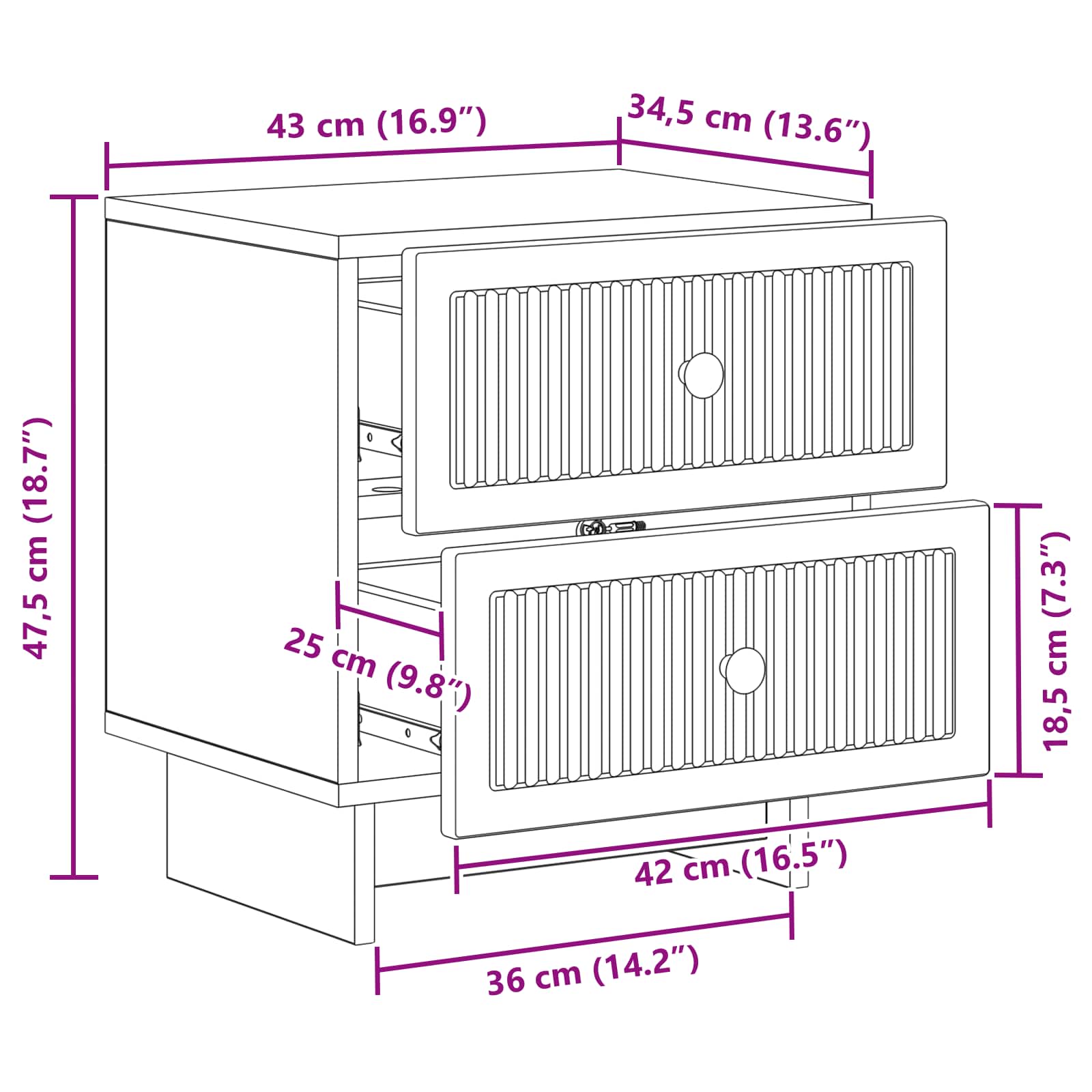 • Kestävä tekninen puu: Tämä yöpöytäkaappi on tehty kestävästä teknisestä puusta, joka kestää aikaa. Suunniteltu päivittäiseen käyttöön, materiaali tekee tästä huonekalusta tukevan ja luotettavan.