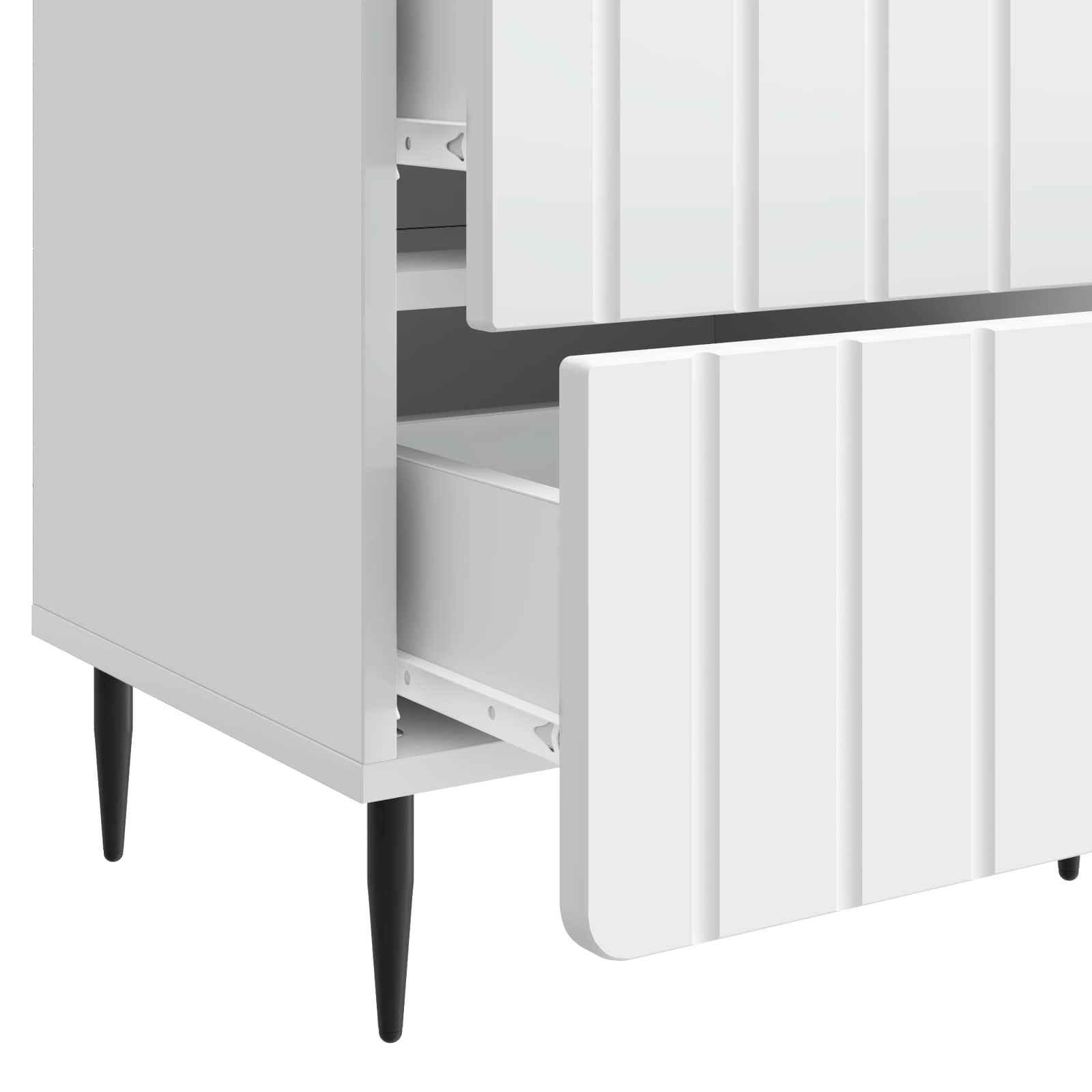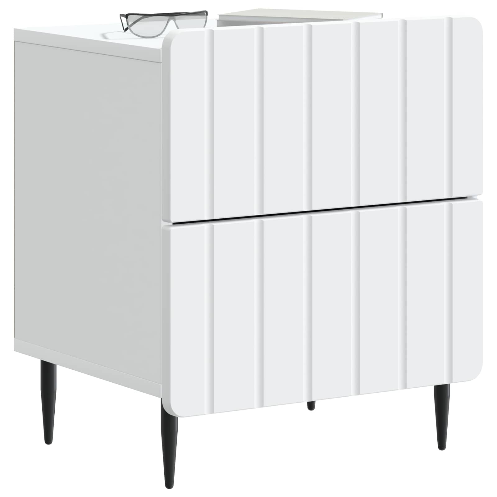 • Käytännöllinen muotoilu: Yöpöydän suorakulmainen muotoilu ja kapeat teräspohjat tekevät siitä vakaannäköisen ja tyylikkään. Se sulautuu täydellisesti eri sisustustyyleihin.